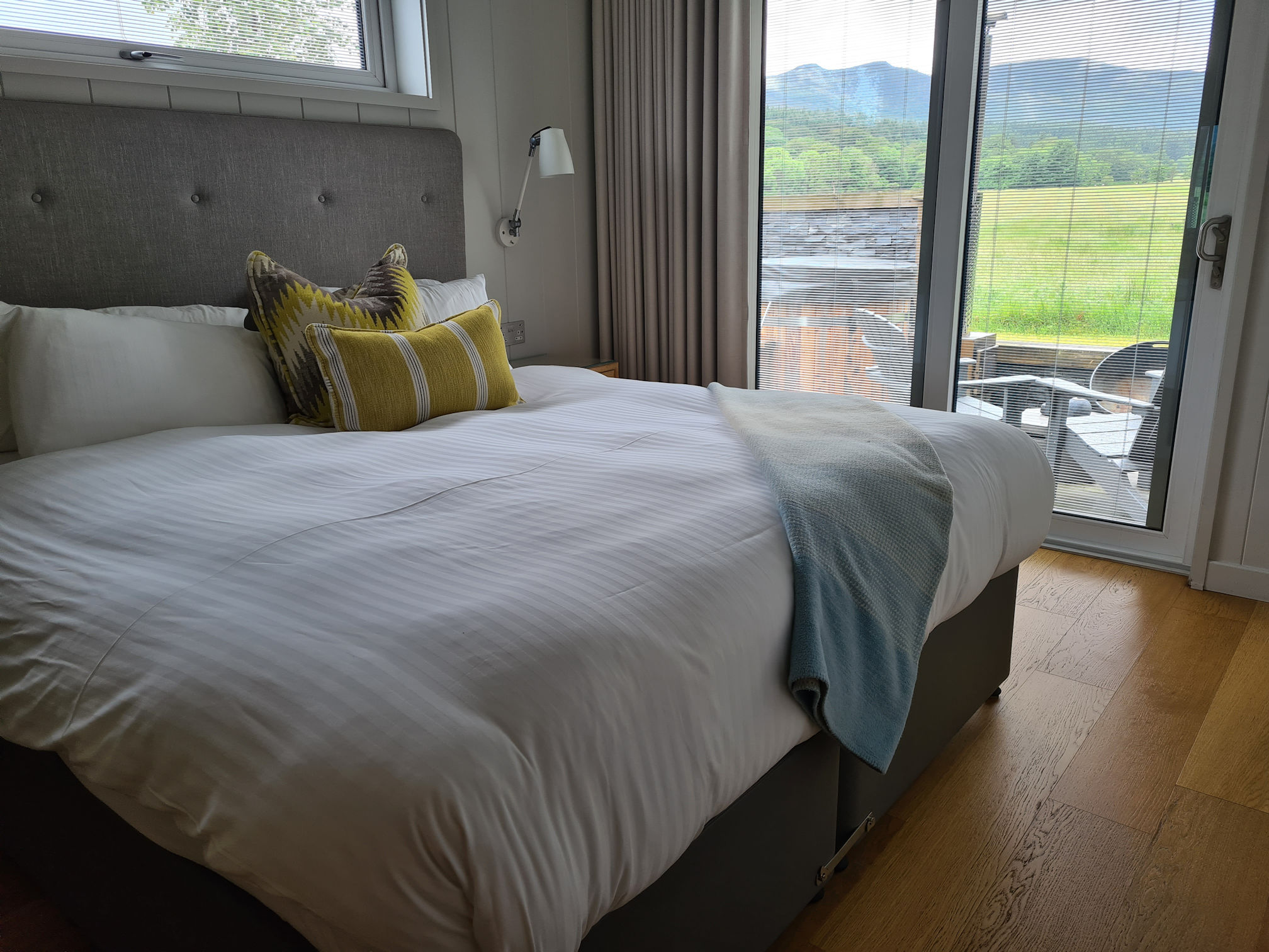 It was so spacious, and I love that the blinds are encased within the windows. There was a little slider that moved up and down to tilt open or closed and also fully open to see the lovely uninterrupted view at the back.