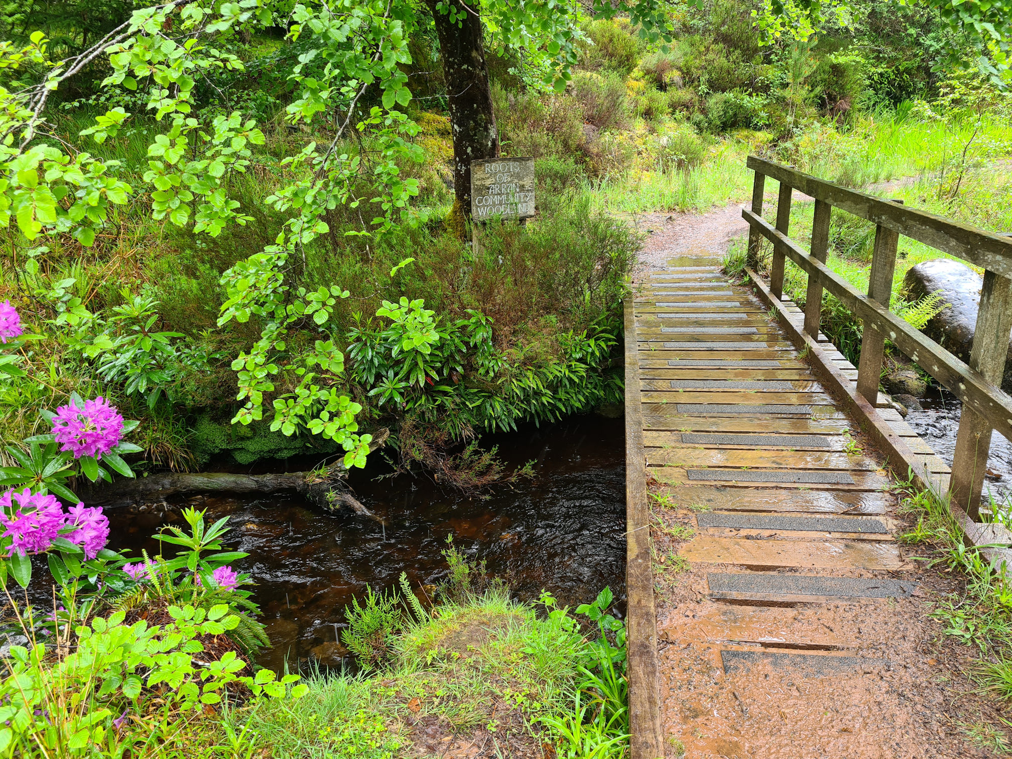 The Roots of Arran Community Woodland carry out conservation work in their 30 hectare woodland and even though it was raining I loved walking through here. I noticed a few side paths but didn’t explore them.
