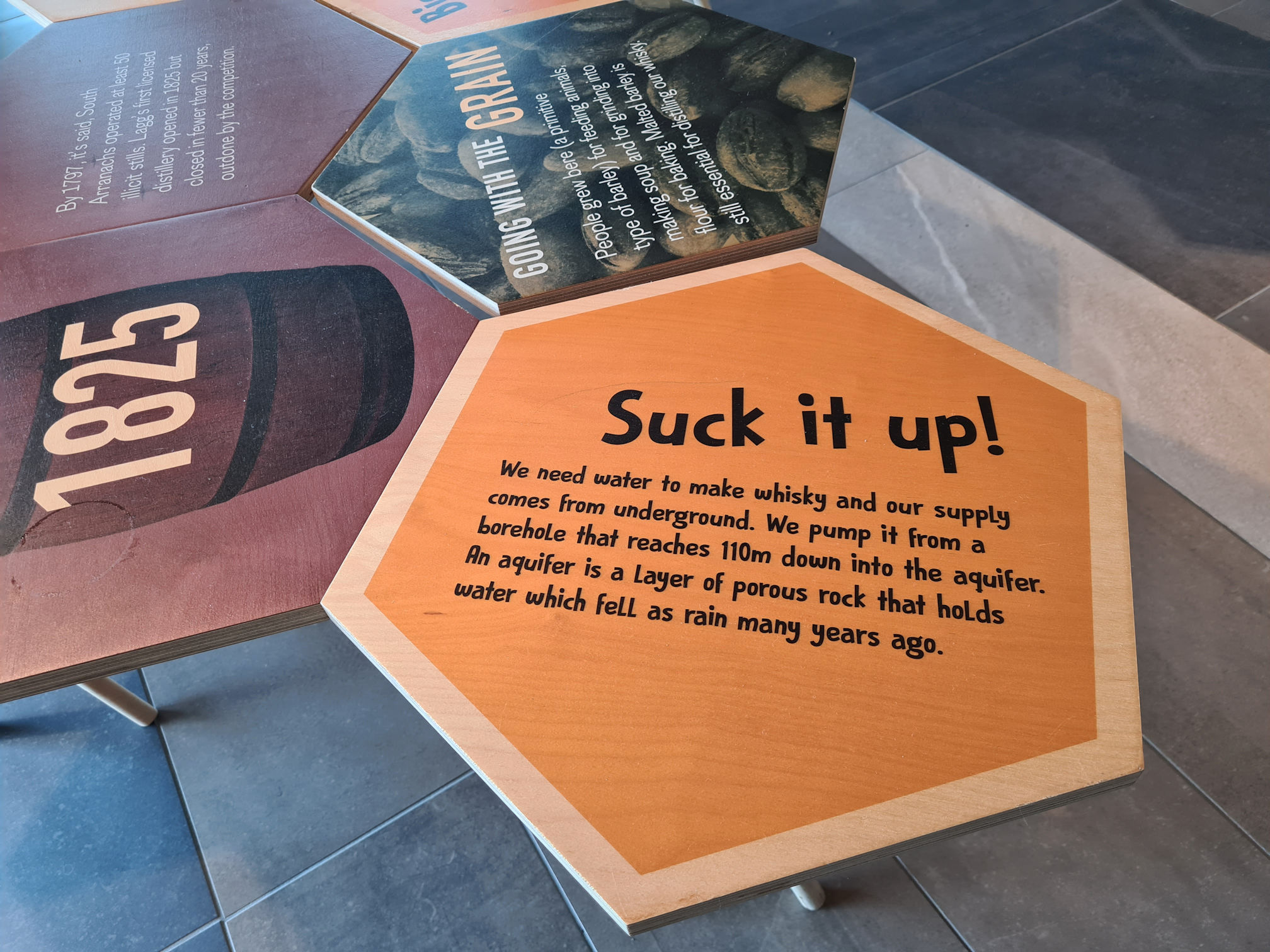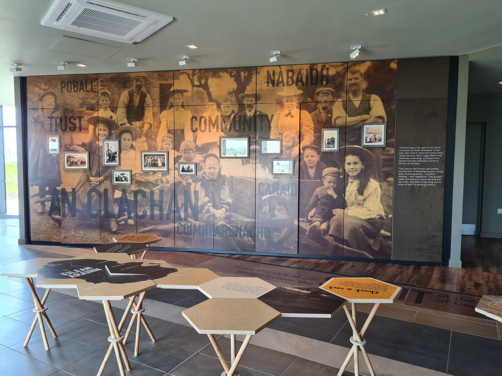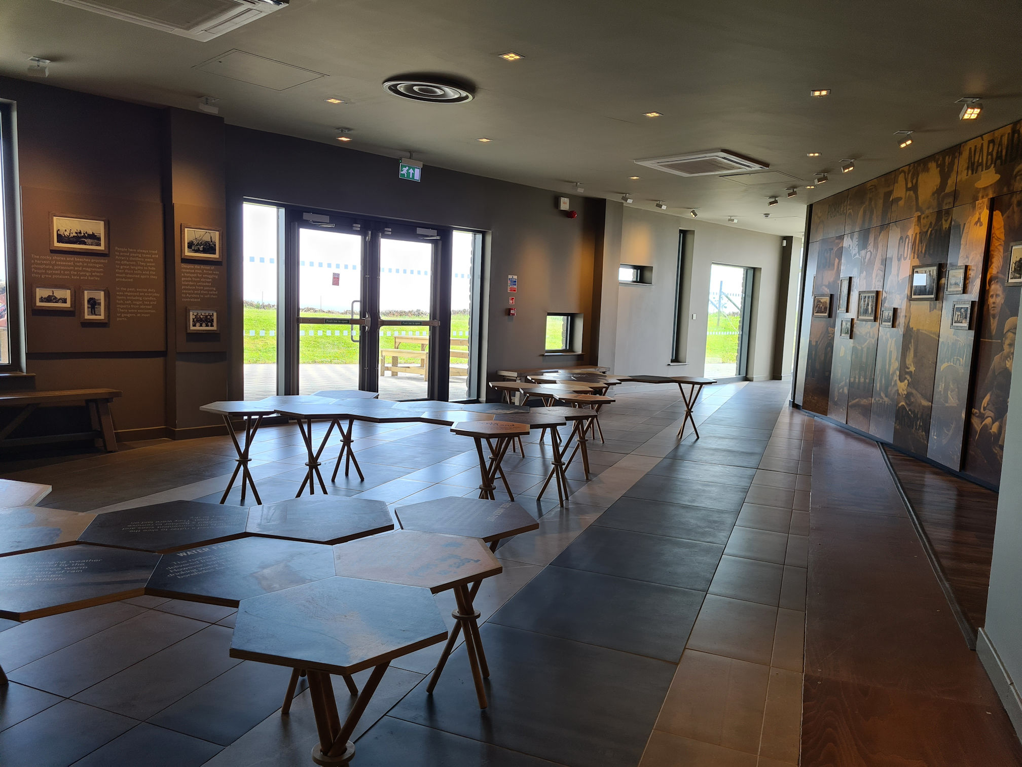Next to the Kilmory Café is the meeting area for tours, so we had a quick look at all the wonderful stories spread across the walls and little hexagon tables. What a wonderful space. In fact the whole building was very spacious and I felt so happy being there.