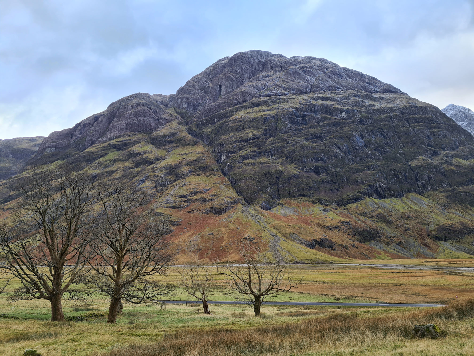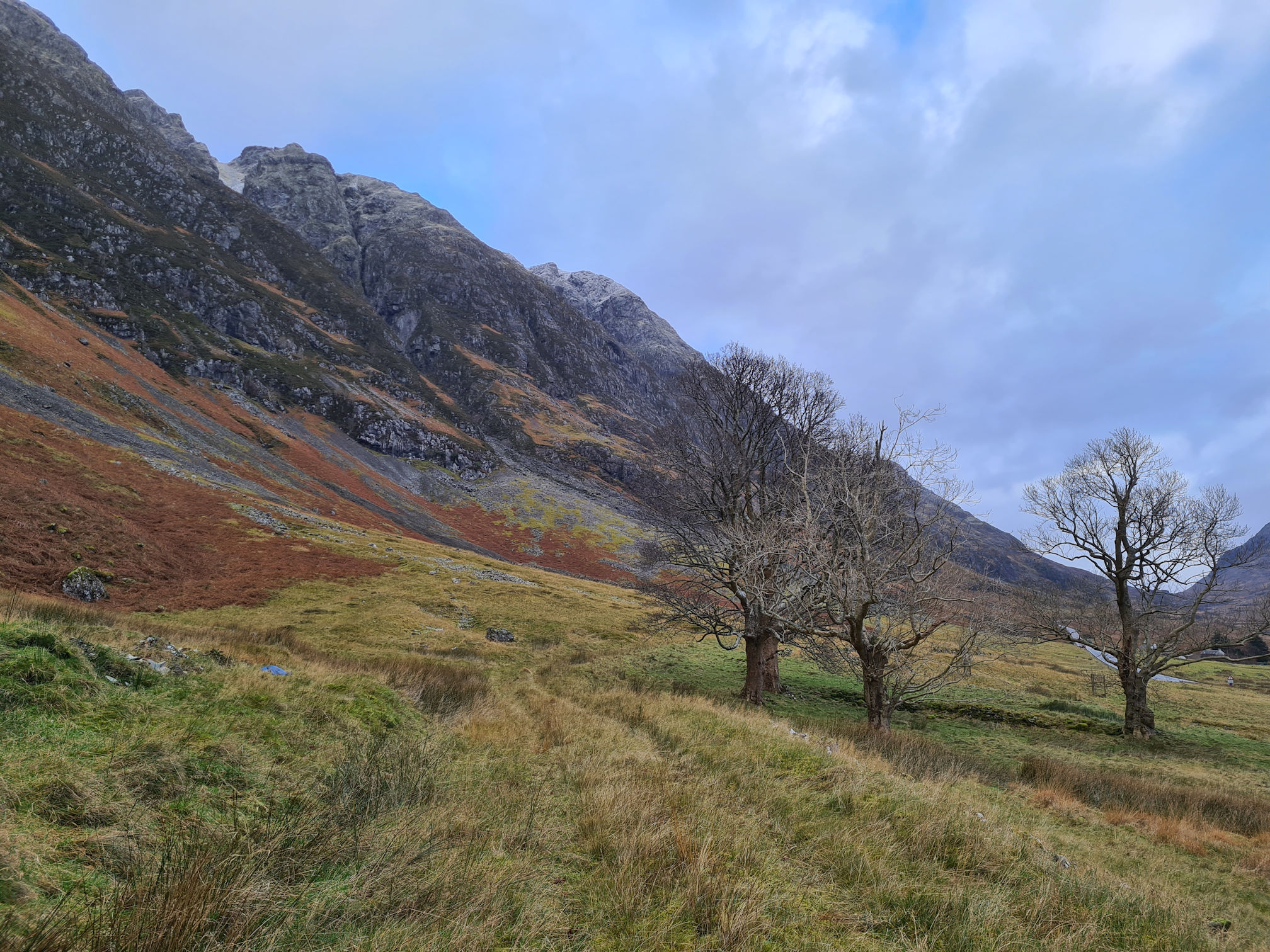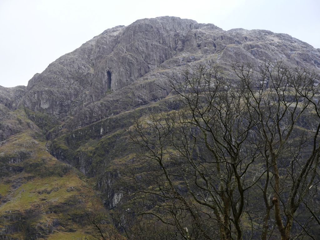 What I loved about this location is I could stand off the main road and stare up in awe at Ossian’s Cave. The cave is set within Aonach Dubh, the third mountain of the Three Sisters on the west side.
