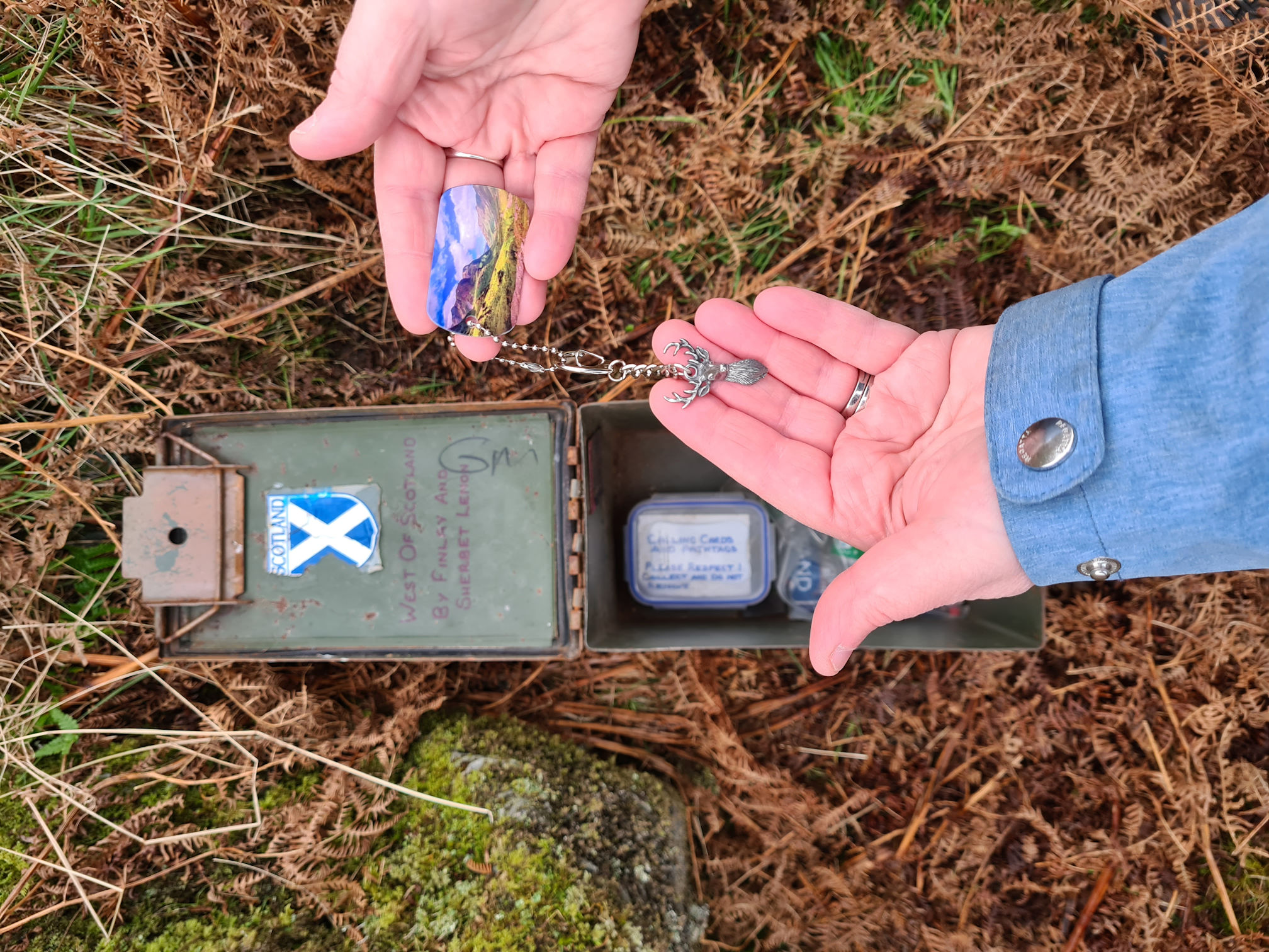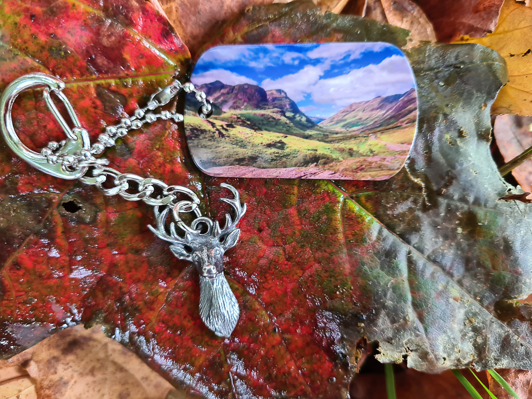 It was time to send another one out there, and what better place than Glencoe. The hunt was on and I found the perfect trackable tag with a photo of Glencoe, the famous picture postcard of Scotland. I also attached a stag keyring who was excited to go on an adventure as well.