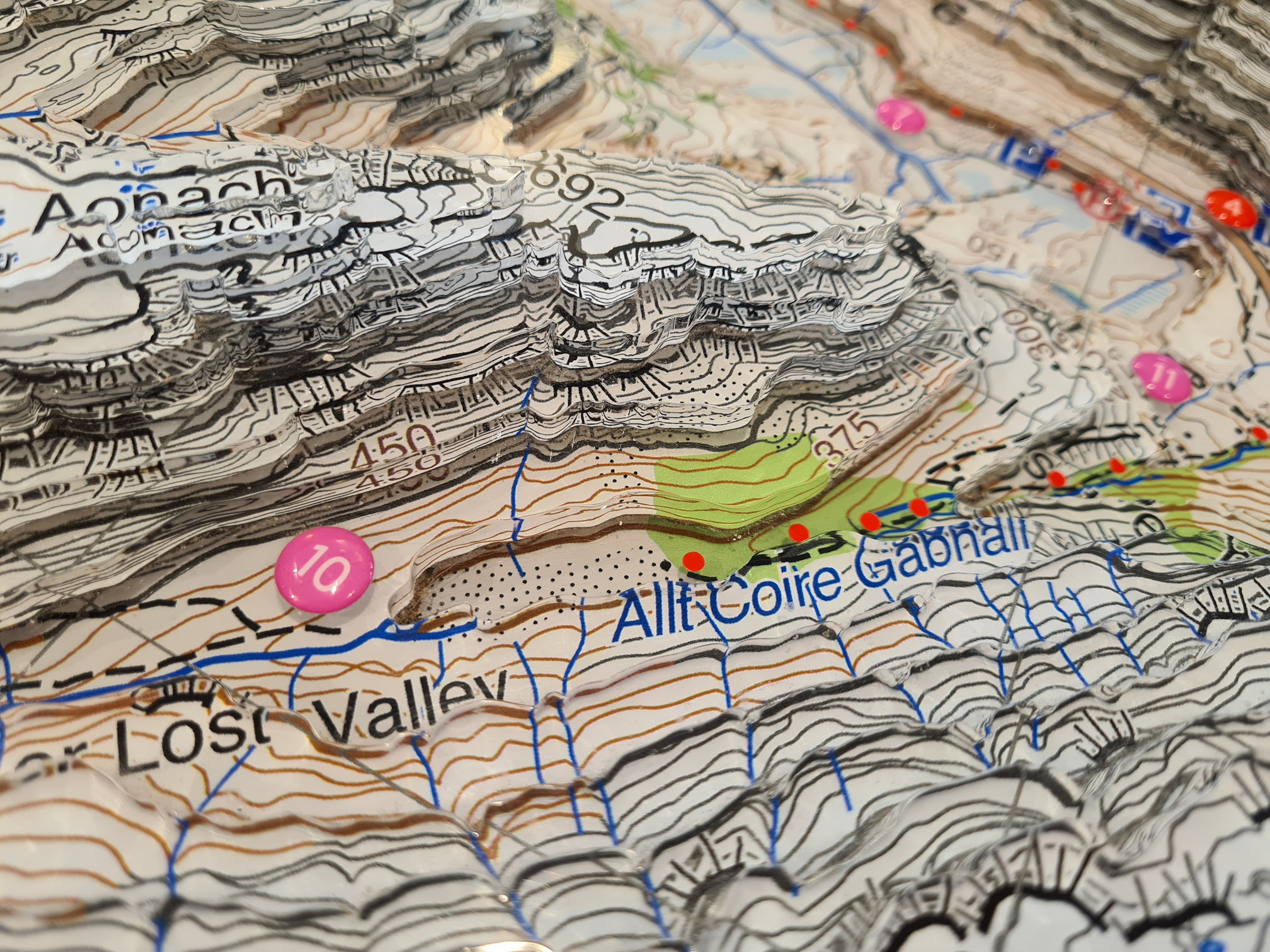 This was the first time I saw the 3D ordnance survey map of Glencoe. It’s pretty amazing to look at all the mountains, their names and the paths mapped out.