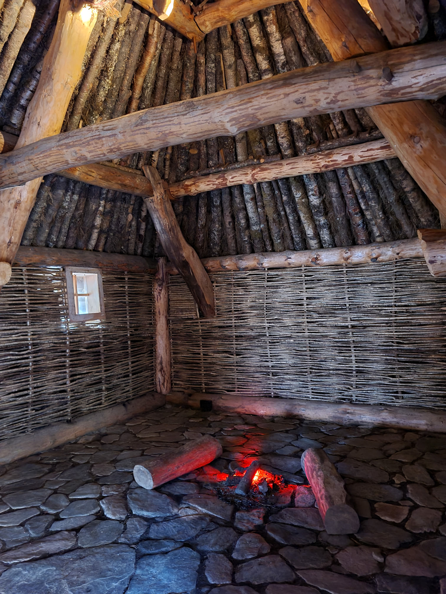 Inside there’s two rooms, one with an imitation fire on the floor which would burn day and night to keep warm and cook. The other room was emptier and might have been where animals sheltered.