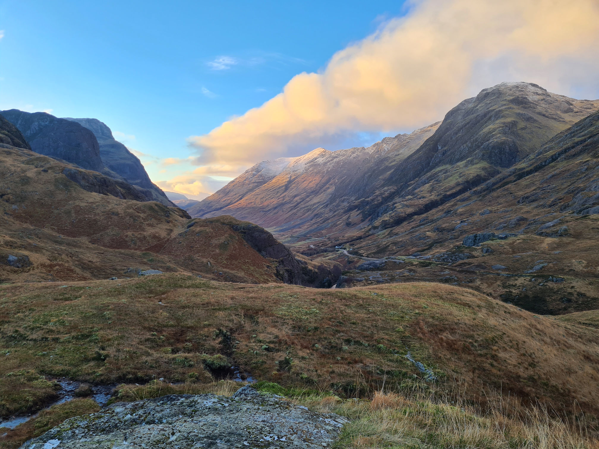 There’s a few stopping places along the glen that take you to different walks or hikes. On our way back heading home we stopped off at the Buachaille Etive Beag car park which has a path leading up into the hills. We were curious and hiked a short way to check if there was a viewpoint.