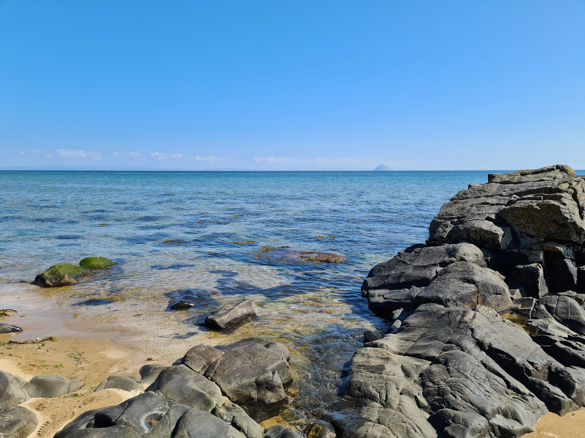 As I walked across the grass towards the dry stone wall, I stood for a moment and gazed out to the bluest ocean I’ve seen in a while. I could see the island Ailsa Craig and was thinking about how I would love to stand on the top of it one day and look across to Arran.